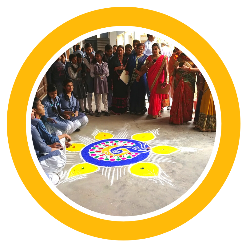 Diwali cards, Rangoli, Mehandi, posters, Vandanavars, debates, general knowledge questions, Bag, Sanskriti Gyan Pariksha and speech competitions are organized duly and prizes are given to the students.